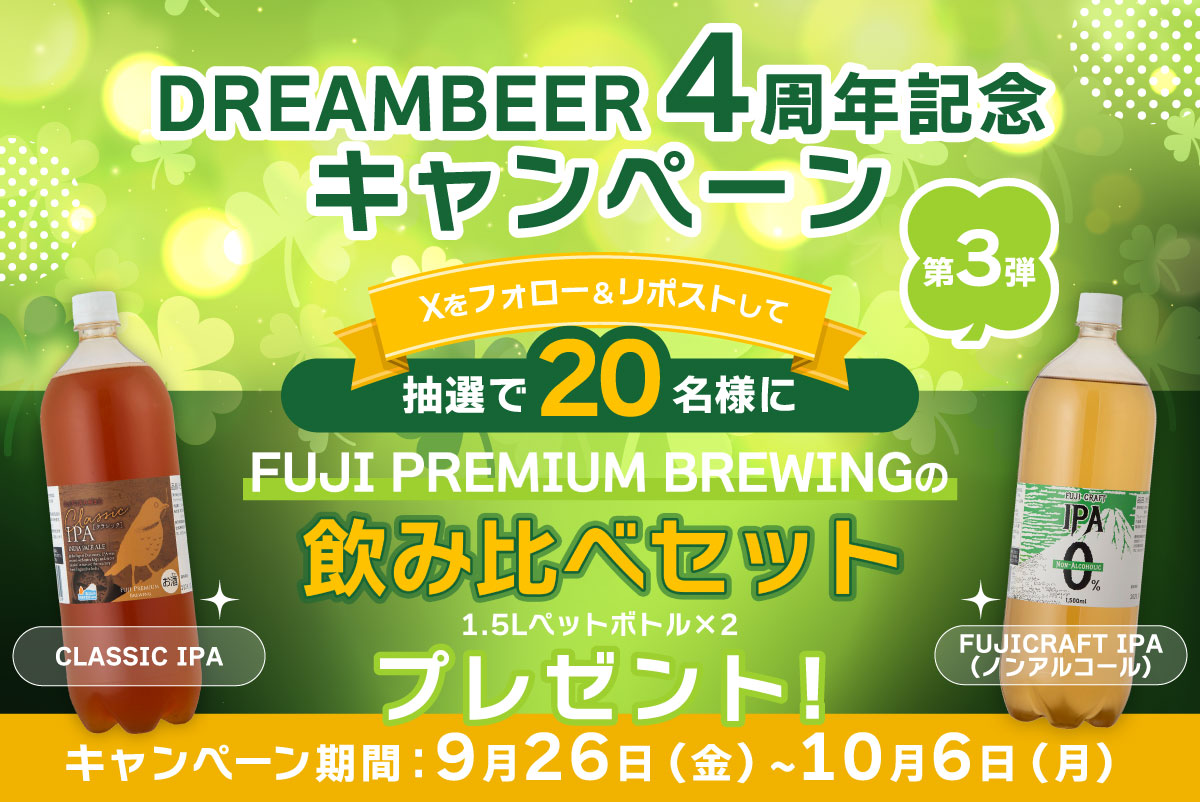飲み比べセットプレゼントキャンペーン!!DREAMBEER 4周年記念キャンペーン<第3弾>1.5Lボトル×2本の飲み比べセットをプレゼント!