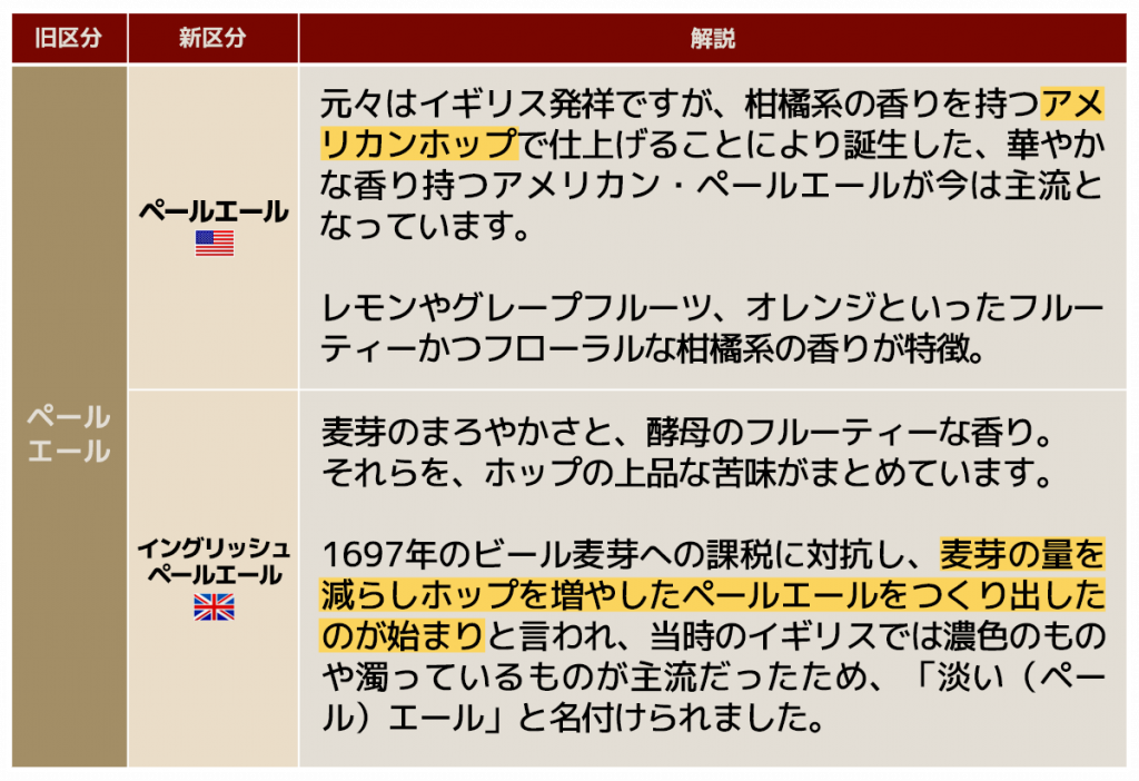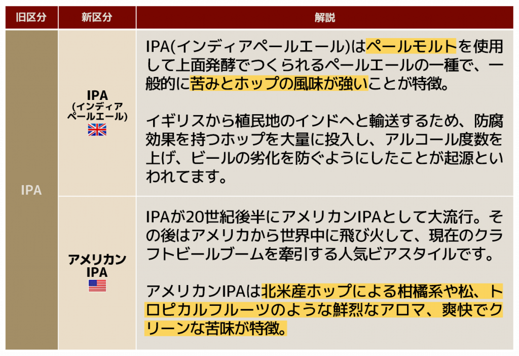 クラフトビール人気の火付け役と言われるビアスタイル「IPA」と、王道のスタイル「ペールエール」について、「イギリス系」と「アメリカ系」に細分化することにいたしました。